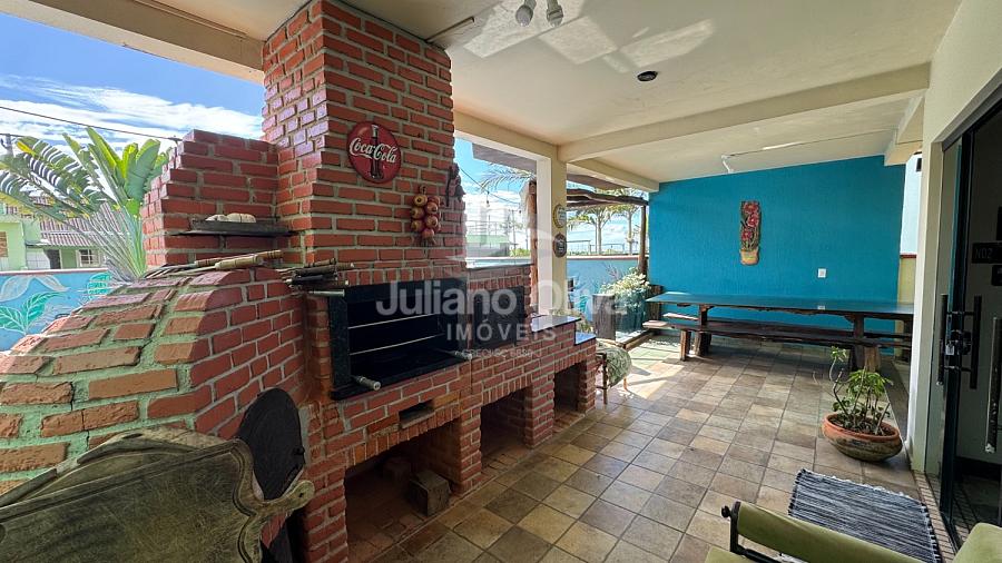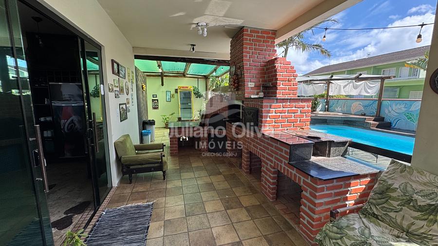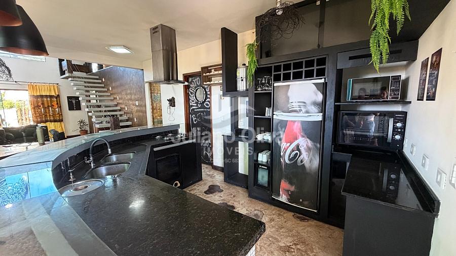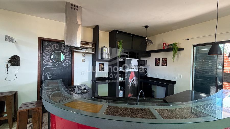 - Área gourmet equipada com churrasqueira, fogão a lenha, forno e forno pizza